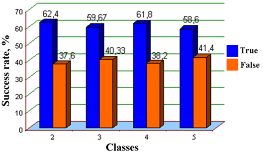When Figure 1 is examined, the success rates of the classes over the totals of male and female students are determined as 2nd, 4th, 3rd and 5th grades, respectively. This result supports what is initially expected. The low success of both males and females in the 5th grade is a situation that needs more attention and caution.