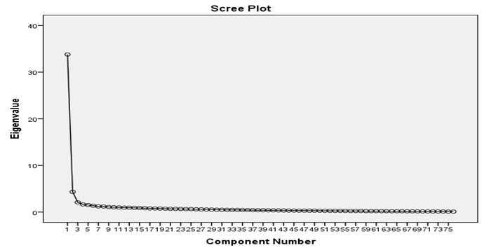 As well as determining the number of factors in the scale, the contribution of each component to total variance was analyzed through scree plot. After further analysis of the scree plot, it was determined that the scale consisted of a single factor. As an extraction method, Principal Components Analysis was performed to determine the factor design of the scale.