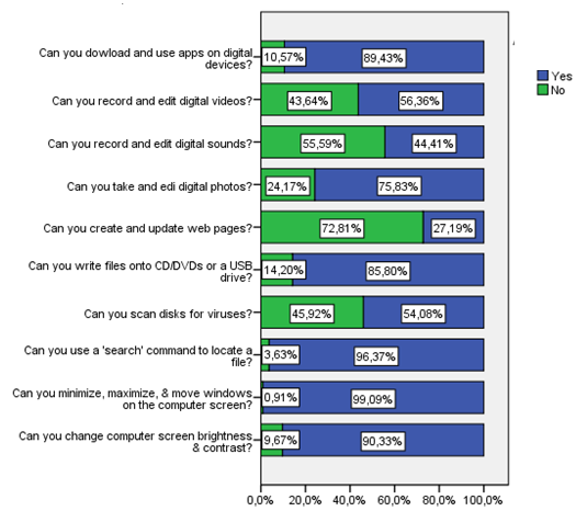 ) studies and is attributed to a lack of metalanguage on the part of L2 learners to express in words the tasks they are able to perform when using a computer. Most L2 learners stated they could understand and use basic functions of the computer system on a regular basis, along with computer use for learning purposes, use of social networking services, use of keyboard shortcuts and use of online learning resources. They also stated that they were competent enough to perform various computer tasks but lacked skills related to the creation or update of a personal webpage. These findings are also consistent withSon et al.’s (2017