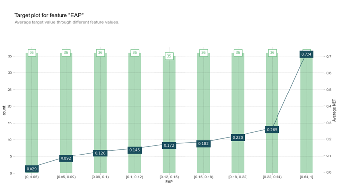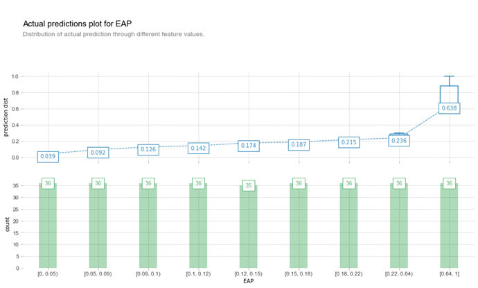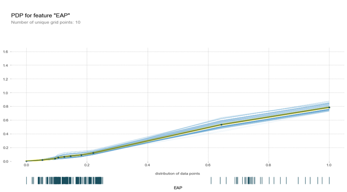 Partial Depends Plot (PDP) is a method of observing how much algorithmic interpretability increases or decreases when linearly altering the feature's figures (Greenwell, 2017