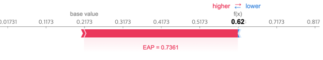 Next, Figure 6 shows the Shapley value of the result of using the model to predict the number of teachers in Seoul in 2019. At this time, the number of teachers is estimated to be 0.62, and this value is very similar to the actual value of 0.60. Again, the factor that positively influenced the estimation of the number of teachers was the economically active population (EAP).