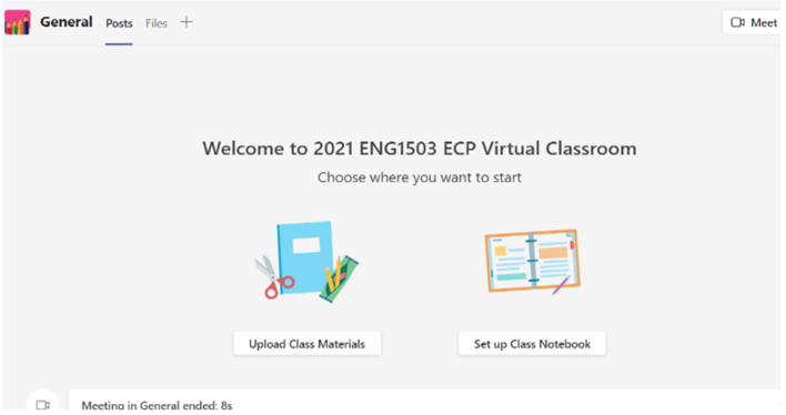 Figure 1. Screenshot of MS teams’ General channel or tab.