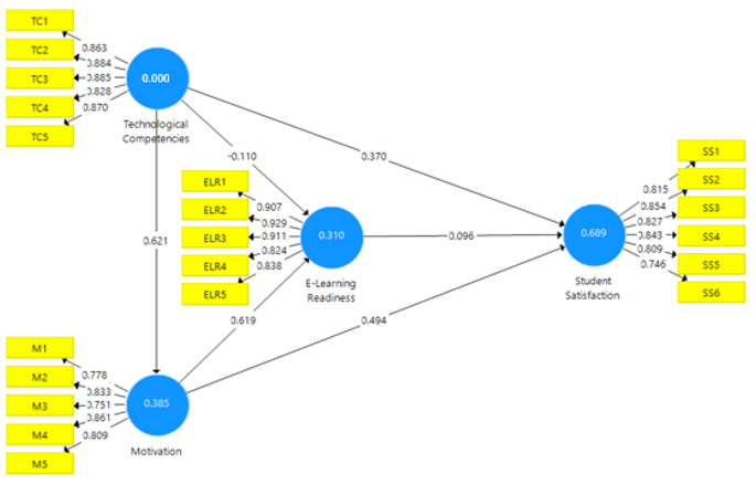 The structural model in this study proves a significant determination of the influence of technological competence, motivation and e-learning readiness on college student satisfaction. In line with this, the model in this study also proves that e-learning readiness can be a significant factor in mediating the effects of technological skills and motivation on user satisfaction. The findings of this study indicate the importance of strengthening digital technology skills balanced with the strengthening of motivation before using e-learning. On the other hand, the readiness for e-learning in students is the main reason for increased student satisfaction, so this aspect is very important in higher education. This research is limited to the variables of technological competence, motivation and e-learning readiness as predictors of student satisfaction in e-learning. In addition, this study also has limitations in data collection. In particular, the data collection period was quite long, from March to June 2021, so there may be differences in the levels of student satisfaction in using e-learning. We recommend further research to uncover various other important factors to raise student satisfaction in using e-learning. We also invite universities to strengthen digital technology skills balanced with strengthening motivation and the formation of e-learning readiness so that student satisfaction will align with the increase.