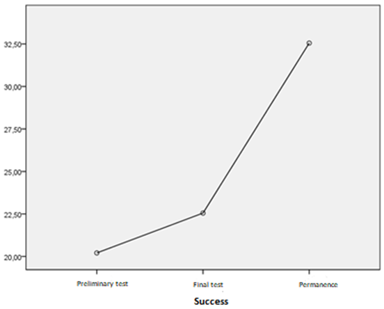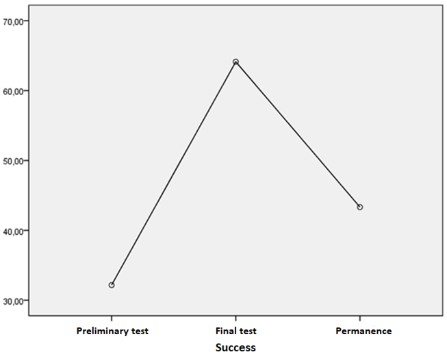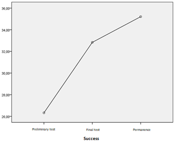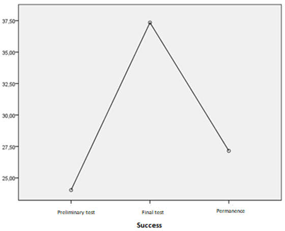 Graphic-1. Preliminary test, Final test and Permanence T-Test Results of Video 1